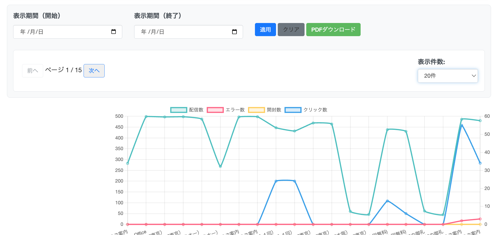 配信結果がグラフで可視化されることで、どのメールがどの程度の結果であったかの確認がしやすくなり、メール配信の改善を進める助けになります。