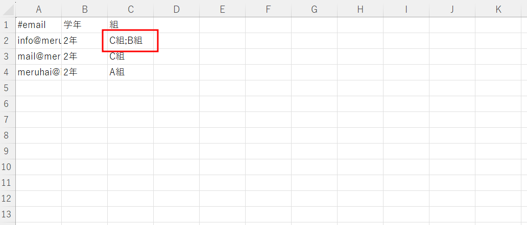 ※既存の内容に値を追加する場合(例:C組にプラスしてB組を追加する場合)