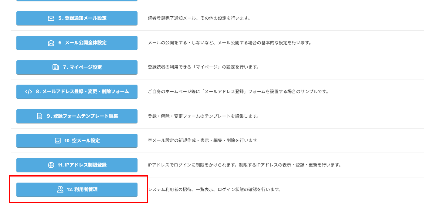 2、「利用者管理」ボタンをクリックします。