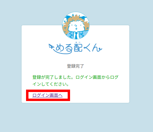 2、「ログイン画面へ」または「める配くん ログインURLのご案内」という件名のメールに記載のログインURLをクリックします。