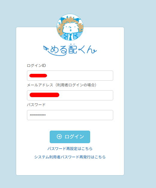 1、「める配くん ログインURLのご案内」メールに記載のログインURLをクリックします。