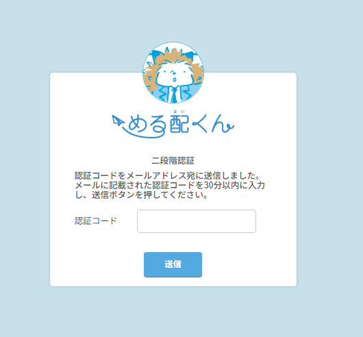 4、二段階認証の認証コードがメールで届くので、入力し、「送信」ボタンをクリックします。