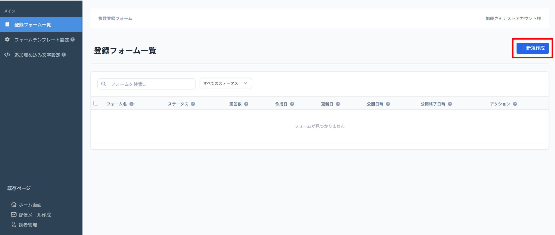 2つ以上の登録フォームを作成する場合は、こちらの機能をご利用ください。