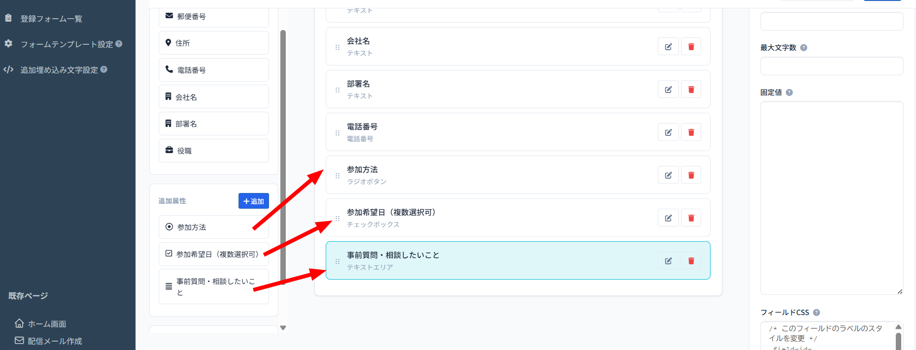 1、画面左の「カスタム登録フォーム」をクリックします。