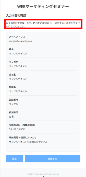 後述する「カスタム登録フォーム」専用の個別登録画面ではございませんので、あらかじめご注意ください。
