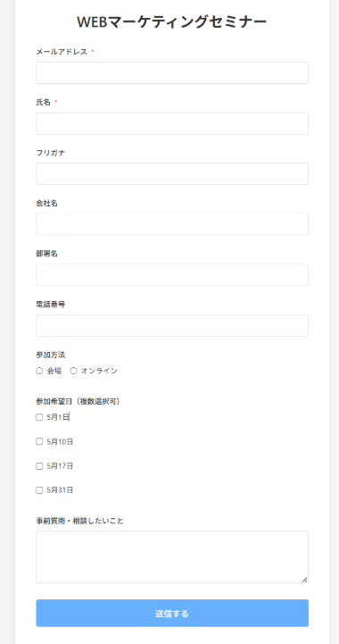 こちらでは例として、セミナー募集のフォームを作成します。